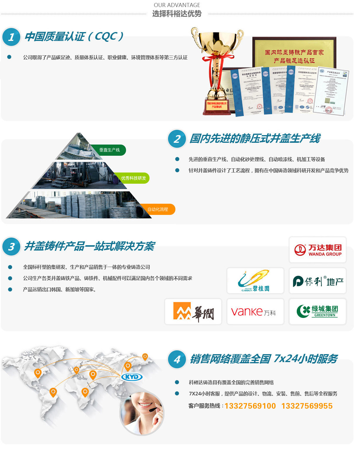晉城市科裕達(dá)鑄造有限公司,位于山西省晉城市南村鎮(zhèn)智能綠色鑄造創(chuàng)新產(chǎn)業(yè)園區(qū),成立于2014年2月,注冊(cè)資金2億元整,產(chǎn)量10萬噸。經(jīng)過這些來的發(fā)展,已經(jīng)成為全國(guó)集研發(fā)、生產(chǎn)、銷售各類球墨鑄鐵井蓋、箅子產(chǎn)品于一體的專業(yè)鑄造公司,是已知國(guó)內(nèi)較大的球墨鑄鐵井蓋生產(chǎn)基地。2016年10月,公司順利通過了二級(jí)安全生產(chǎn)標(biāo)準(zhǔn)化的評(píng)審,正式成為一家二級(jí)安全生產(chǎn)標(biāo)準(zhǔn)化企業(yè)。2017年3月,山西省安全生產(chǎn)監(jiān)督管理局授予公司2016年冶金工貿(mào)行業(yè)“安全生產(chǎn)先進(jìn)單位”稱號(hào)。2017年11月被山西省中小企業(yè)局授予“專精特新”中小企業(yè)榮譽(yù)。2020年8月被認(rèn)定為國(guó)家高新技術(shù)企業(yè)。2021年5月被中國(guó)鑄造協(xié)會(huì)認(rèn)定為“單項(xiàng)冠軍企業(yè)”。2021年9月被山西省中小企業(yè)局授予“專精特新小巨人”企業(yè)榮譽(yù)。2022年被中國(guó)鑄造協(xié)會(huì)認(rèn)定為第四屆鑄造行業(yè)排頭兵企業(yè)。2023年7月被工信部認(rèn)定為“國(guó)家級(jí)專精特新小巨人”企業(yè)榮譽(yù)。2024年被省工信廳認(rèn)定有“省級(jí)綠色工廠”及“省級(jí)企業(yè)技術(shù)中心”。